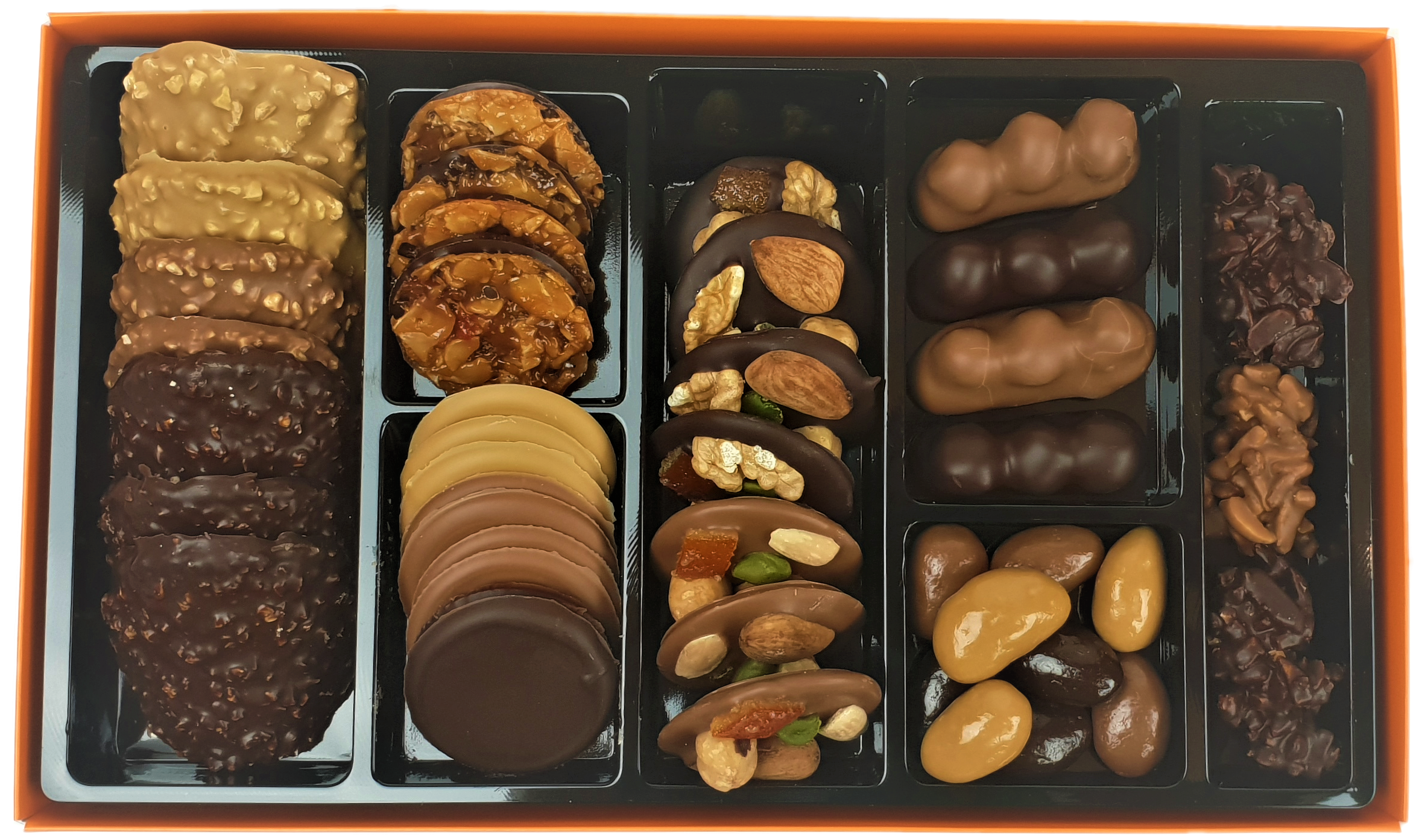 Possibilité de présence des allergènes suivants : Noisettes, amandes, pistaches, gluten, produits laitiers, lécithine de tournesol