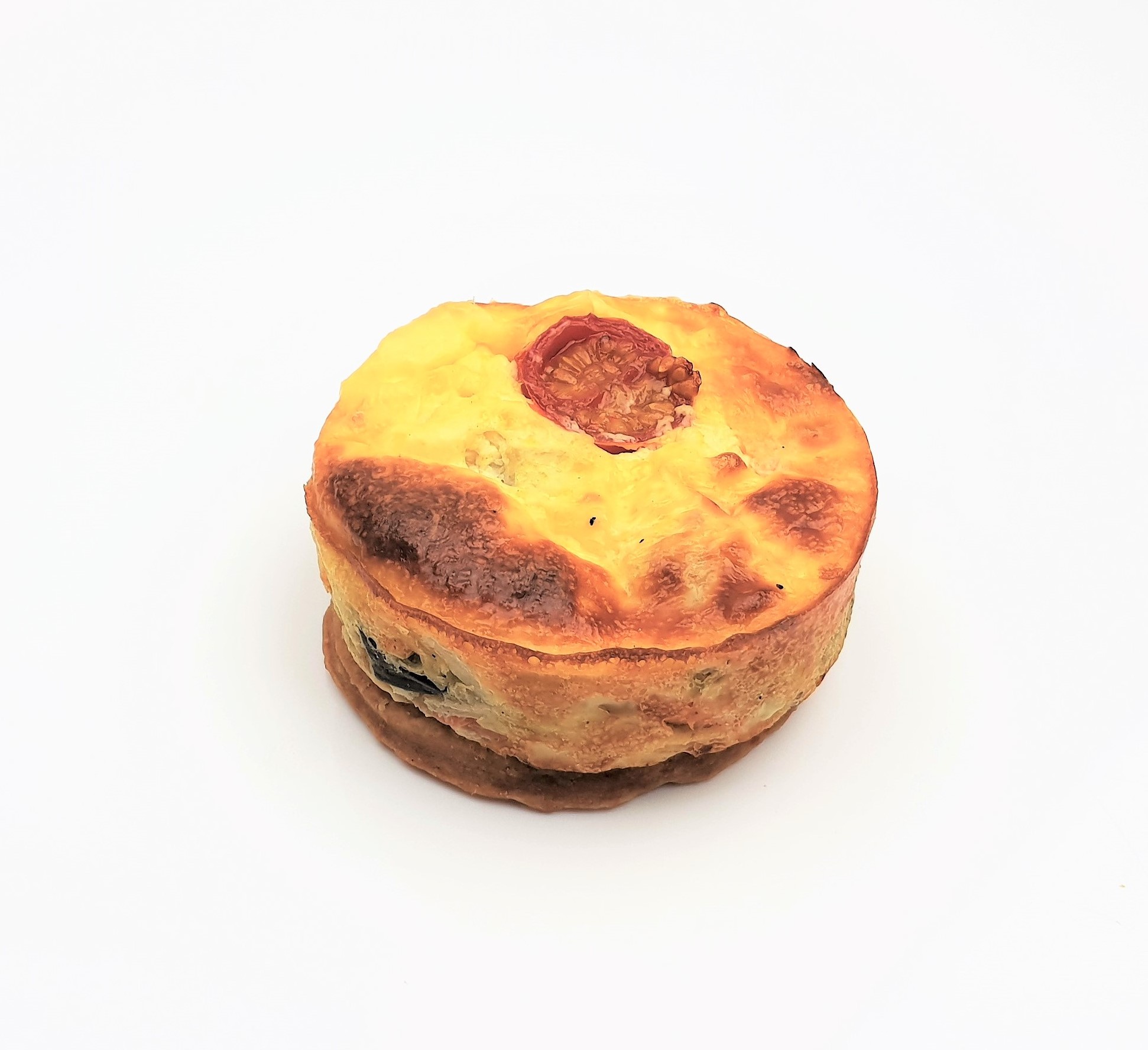 flan de légumes marinés pose sur un sablé comté-Parmesan